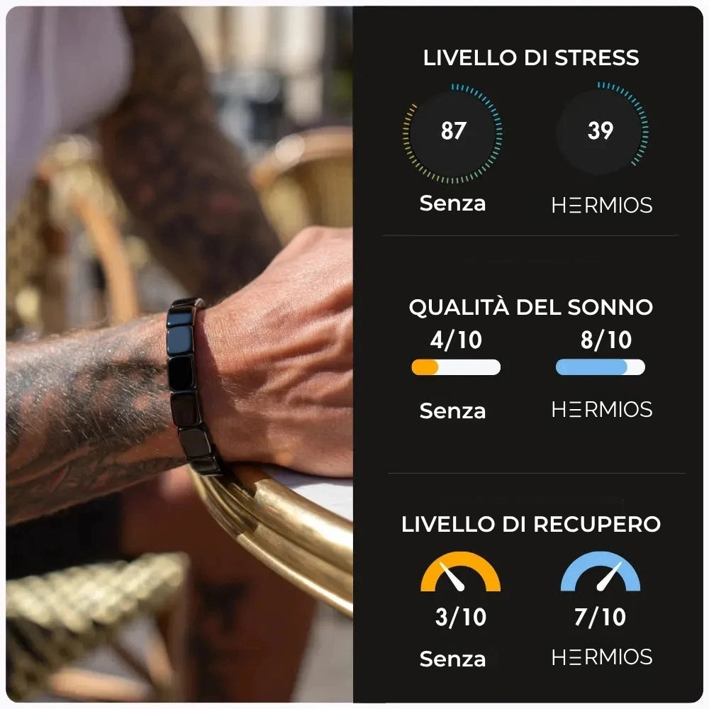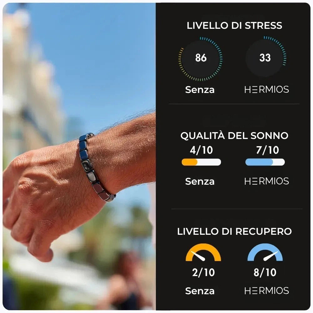 Sblocca la tua forza naturale con Hermios, il primo braccialetto maschile realizzato in pura ematite per interagire con il campo energetico del tuo corpo, amplificare il metabolismo, migliorare la concentrazione e riaccendere il potere primordiale con cui sei nato.