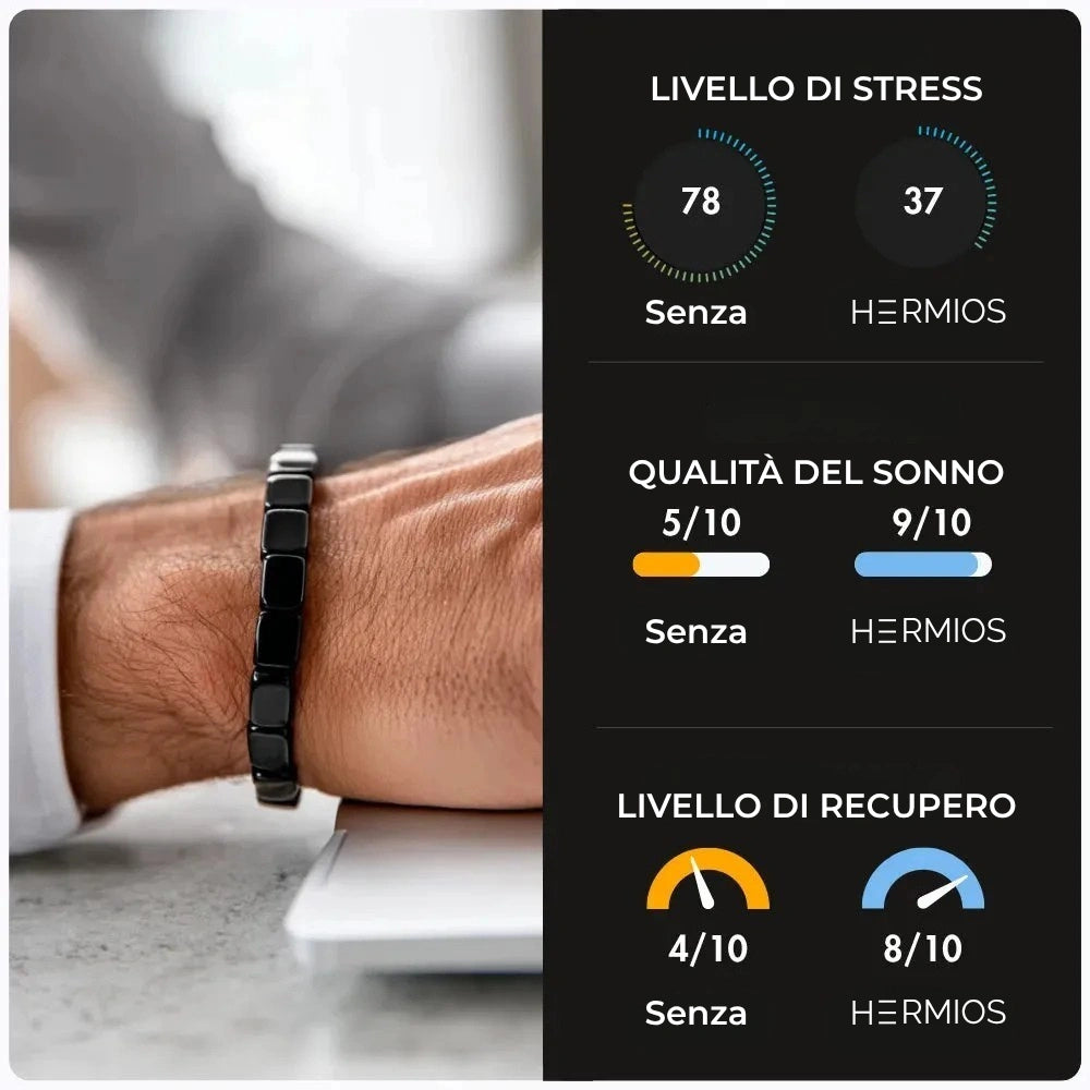 Il Bracciale Hermios ti aiuta a riaccendere l’energia maschile, la concentrazione e la fiducia — con un semplice rituale quotidiano. Niente pillole. Nessun effetto collaterale. Nessun “trucco” esagerato.